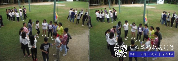 項目描述:有一條湍急的河(hé)流在大家(jiā)前麵,隻有高大威猛的怪獸(shòu)才能通過,我們要按照(zhào)項目要求組成一隻大怪獸,順利通過(guò)河流,過 程(chéng)中至多八隻手,四隻腳可(kě)以接觸到河麵,但全體人員必須連(lián)接在一起組成一個整體(tǐ)。