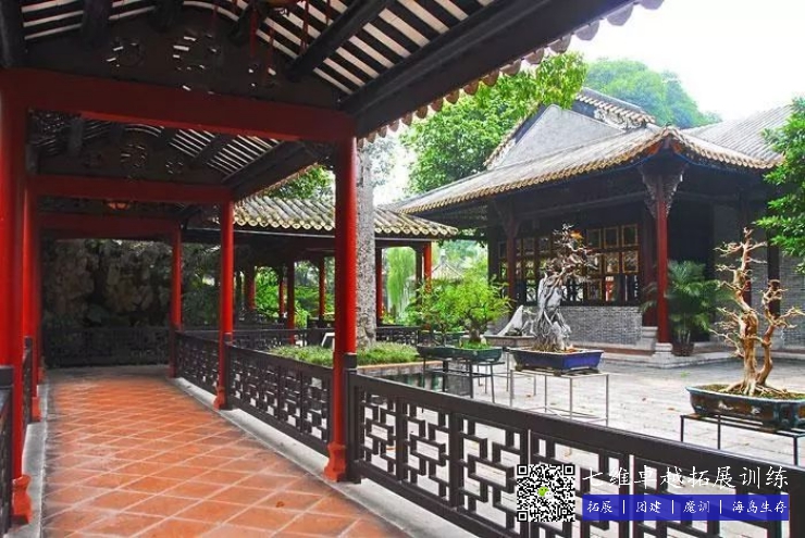 花卉果木蔥籠滿目(mù),藝術精品俯(fǔ)仰即拾(shí),集古(gǔ)代建築、園林、雕(diāo)刻、詩畫、灰雕等(děng)藝(yì)術於一體,突顯出中國古典園林庭院建(jiàn)築中“雄、奇、險、幽、秀、曠(kuàng)”的特點。