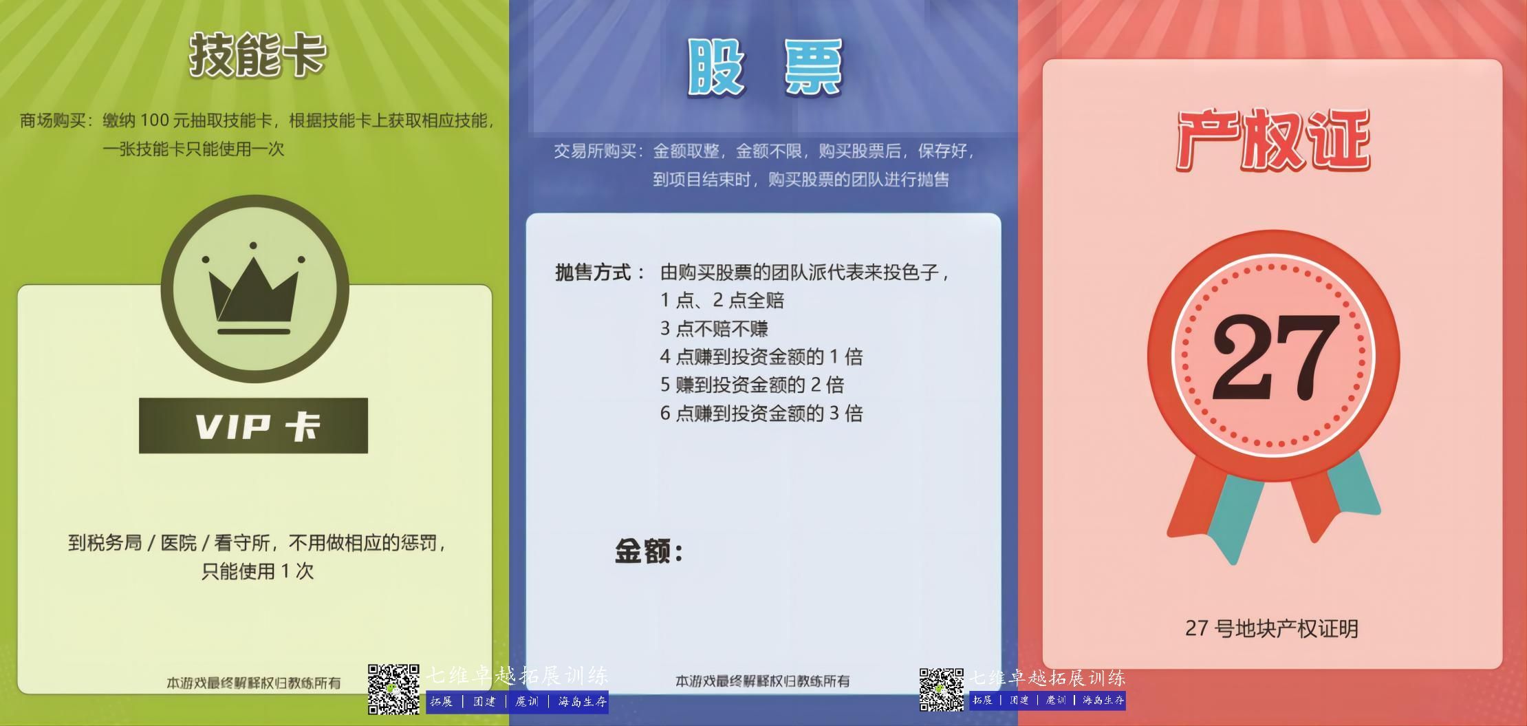 1、遊戲開始前,每個隊發放2000元啟動資金+代表團隊(duì)身份的點(diǎn)樁(zhuāng);(放在方格上的標記物)