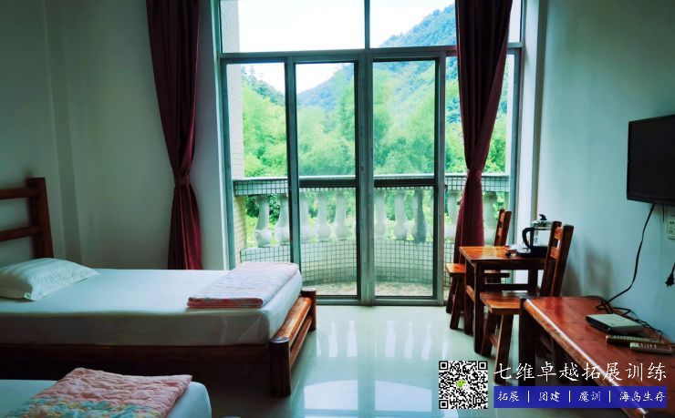 客房簡介:基(jī)地可(kě)容納住宿人數為98個床位,其中包含:雙人房16間,三人房14間,6人房4間