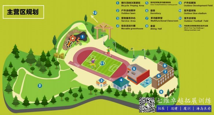 ★ 分為極限運動區、叢林探索區、戶外活動區(qū)、室內綜合運動區、多功能教學區(qū)、生活服務區幾大功能區域;