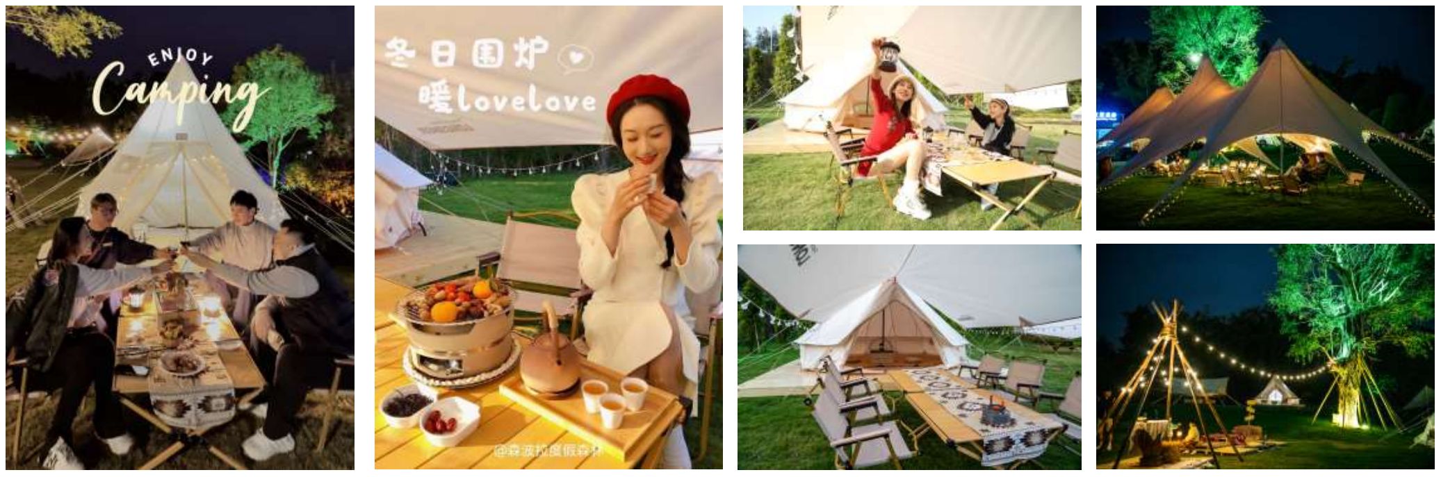 萬畝森林環抱(bào),以北歐森林風格打造,營地設有4人(rén)精致帳篷和6人精致帳篷,10人天幕(mù)和30人大天幕,舞台、投(tóu)影、音響等設備一應俱全。可同時容納200人舉行(háng)各種戶外宴會、沙龍(lóng)、主題派對(duì)等活動,在這裏你可以偶遇到森林的夥伴,陽光下悠閑自在的小鹿或者(zhě)是成群結隊的小羊,約上三五知(zhī)己,在極光營地,感受風與自然(rán)與朋(péng)友(yǒu)們一起享受圍爐煮茶慢時光的(de)閑適,極光(guāng)營地特色美食任君選擇(zé),從白天到黑夜不(bú)間斷的各種(zhǒng)各樣美(měi)食讓你大飽口福。