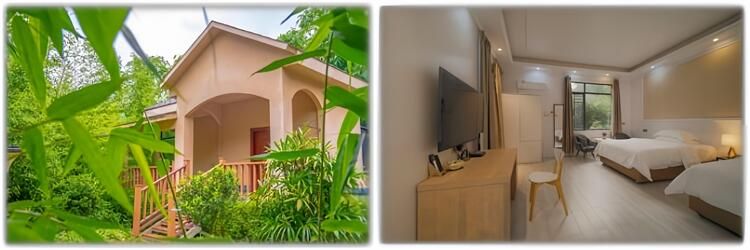 以竹子為主題, 圍繞田園化的設 計理念(niàn)設(shè)計裝修風格為簡歐風給 人一種優雅 、 清靜的住宿體驗。
