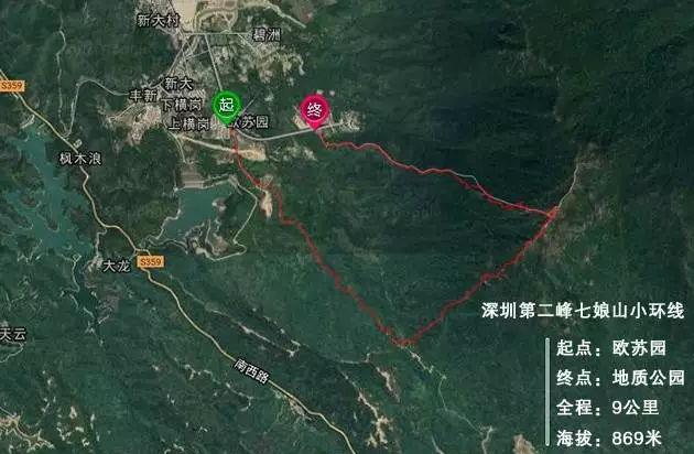 全程9公裏,海拔869米
