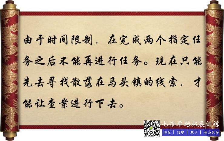 活動開始,四個小組分(fèn)別會得到一條線索指向劇本中(zhōng)的某個角色(sè)。各小組完成對應角色發出的命令之後,獲(huò)得相對應的線索。現在(zài)去找下一個角(jiǎo)色進行(háng)線索(suǒ)的追查探索。