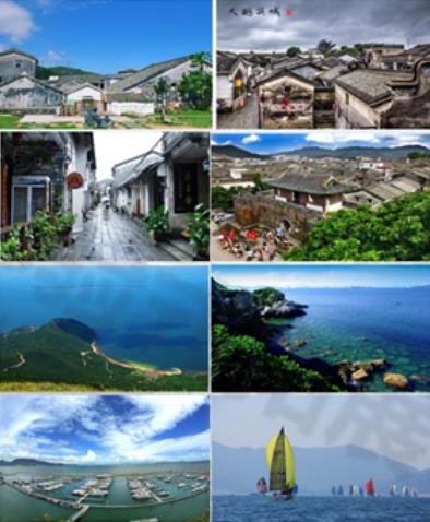 大鵬新區(qū)東西兩邊臨海,南北兩麵環山(shān),區山地多平地少,地形較為複雜;大鵬自然地貌以(yǐ)濱海低山(shān)、陵為主,多為殘積坡積角礫碎屑、薄層紅壤型(xíng)風化殼(ké)所覆蓋(gài),是典型的基崖山地地貌。在山間和(hé)海濱零星(xīng)分布著寬穀小平原。走進大鵬古城,可以看到保存完好的明清時期的民居和宅地,那狹窄蜿蜓的小巷以青石板(bǎn)鋪就,寧靜古樸;數座(zuò)建築宏偉、獨具特色(sè)的清代“將軍第"有序分布(bù)。其中以抗英名將賴恩爵的振威將軍第最為壯觀,該將軍第有150年的曆史,擁有數十棟屋宇(yǔ)、廳、房、井、廊、院等,其中牌匾眾多,雕梁畫柱,是廣東(dōng)省不可多得的大(dà)型古建築(zhù)。