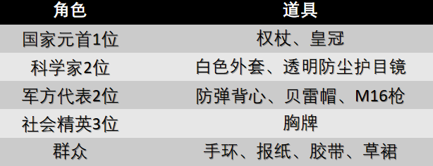 在各(gè)國領(lǐng)到如右圖所示的(de)一係列(liè)道(dào)具後,有國家(jiā)元首帶(dài)領子民們進行關於《流浪地球》主題情景(jǐng)劇的(de)編排和演繹。根據演繹編劇、服飾、演(yǎn)繹等環節進行評分,來獲得各國流(liú)浪地球計劃啟動資金!