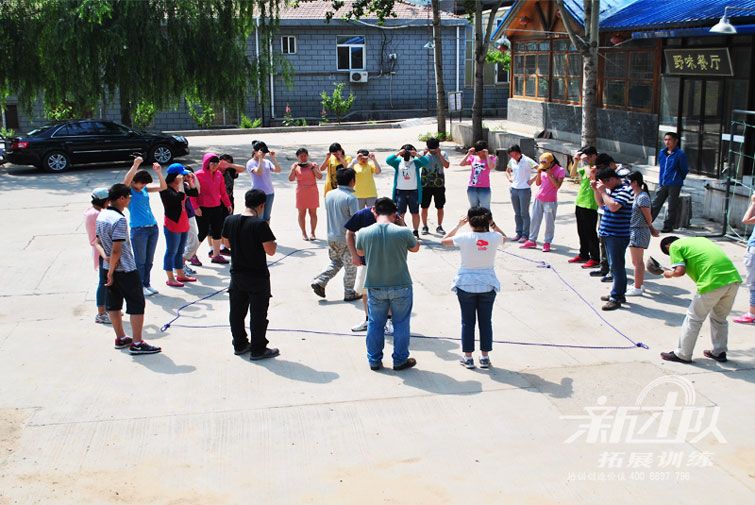 盲人造房:要求所有成員的眼睛將用眼罩蒙起來,要求在(zài)失去視覺的情況下用培訓(xùn)師交給的一(yī)些繩子拚成房子形狀,用到三角形、正方形和圓(yuán)形