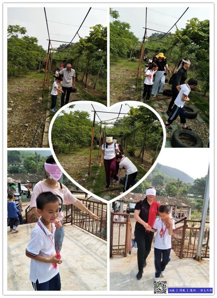 活動規則:用布(bù)蒙住父親或母親的眼睛,孩(hái)子攙扶著父母,用語言和行動幫助他們通過這些障礙(ài),途中注意安全,像小時候父母照顧我們一樣來照顧父母,不要讓爸(bà)爸媽媽(mā)磕著碰著傷著。障礙過程:過(guò)輪(lún)胎——鑽洞——過杆——繞樹