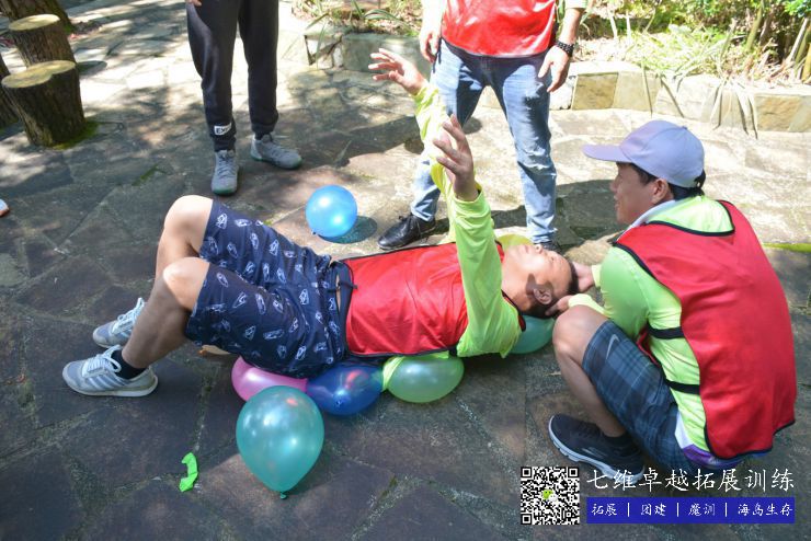 吹10個氣球鋪成氣墊(diàn)床,讓小組體重最重的(de)成員躺上去,隻能雙腳著地,其他部位(wèi)必須離開地(dì)麵,堅持1分鍾,氣球不破算完成。