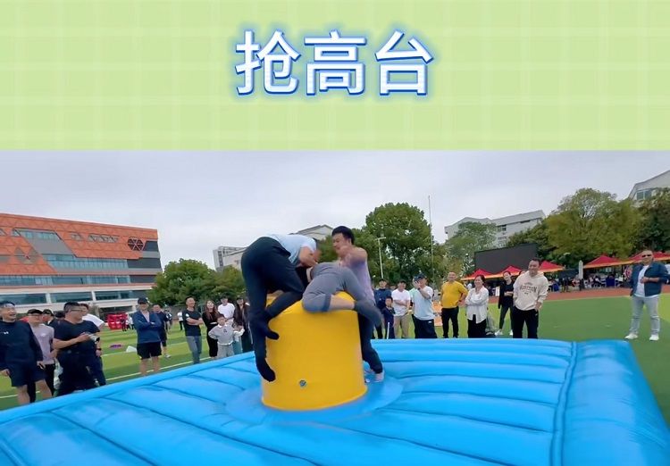 項目說明 :每隊(duì)出4人,時間(jiān)以60秒為限製、裁判發令後、隊伍分別站(zhàn)在離圓形台2米遠的位(wèi)置(墊子邊沿位(wèi)置)、聽到開始的哨聲後,搶占高台(tái),最後10秒(miǎo)提(tí)醒“拍照 了”外圍工作人員(鏡頭固定)拍照一張,在時間(jiān)結束後鏡頭內隊伍人臉完整呈現,同時露出上下兩排牙齒的聯隊(duì)人數多的(de)獲勝。
