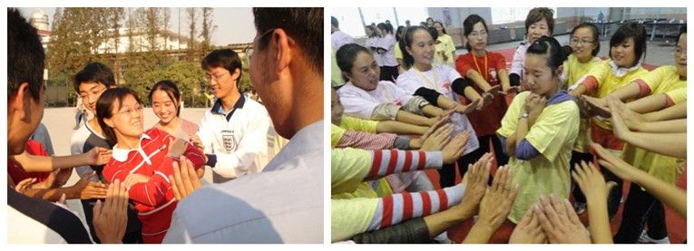 2、學員圍成(chéng)一個圓圈,指定其中一位學員站在圓圈當中。