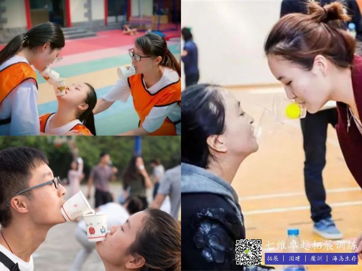 紙(zhǐ)杯傳球(qiú):把杯子口捏成尖嘴形狀,叼著另(lìng)一段(duàn),這樣歪著頭這(zhè)樣更方便。不能急躁!