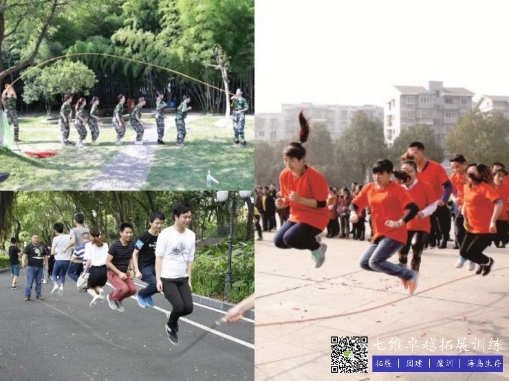 集體跳繩(shéng):兩個人搖繩,其餘人(rén)在中間跳,連續跳十下,中途不能有被繩子絆倒的,如有人被絆倒了就重新開始數數。