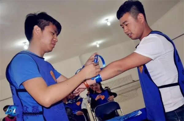 學員們一起手拉(lā)手圍成一個圈圍。