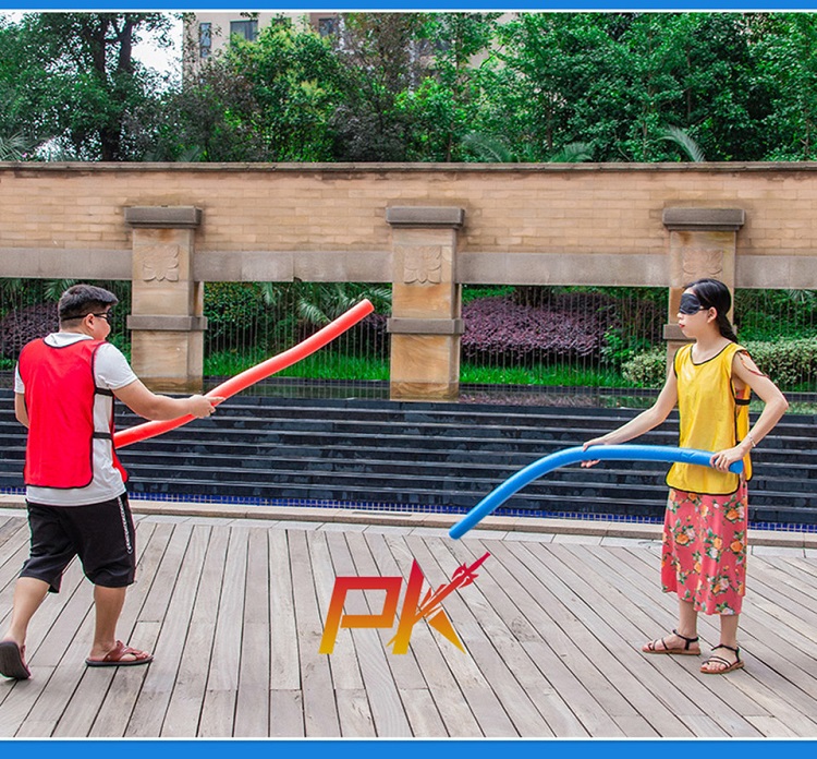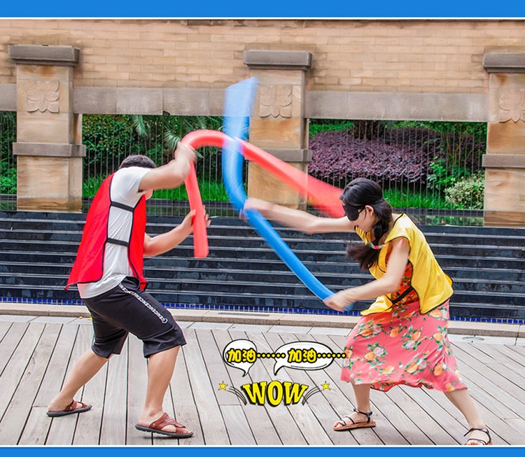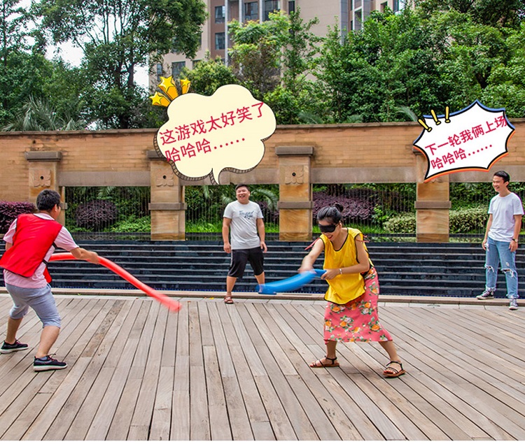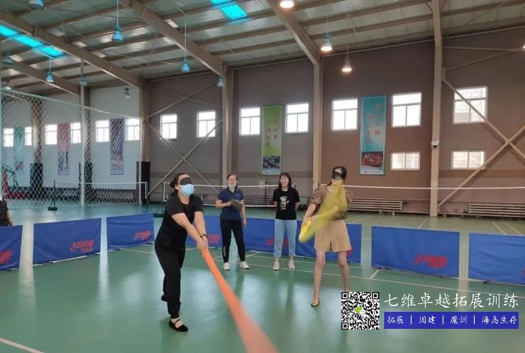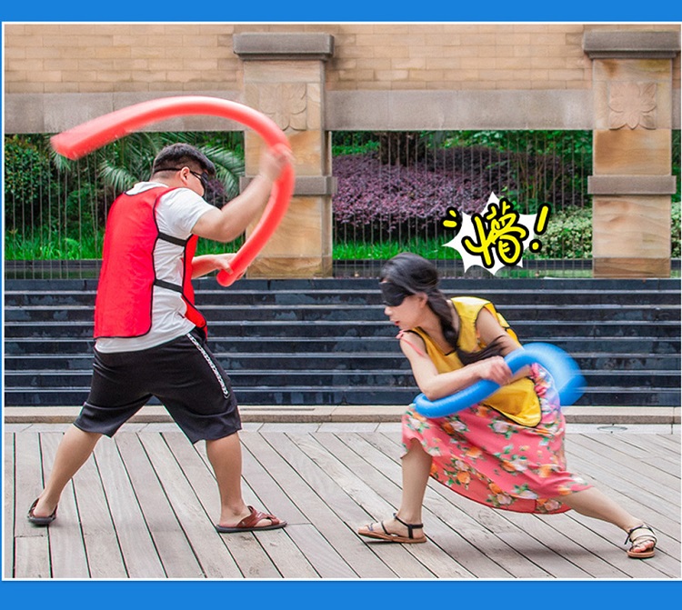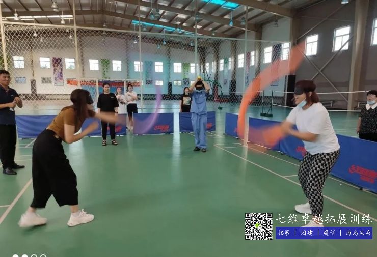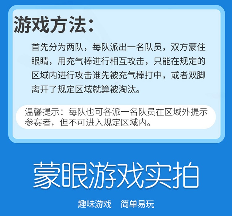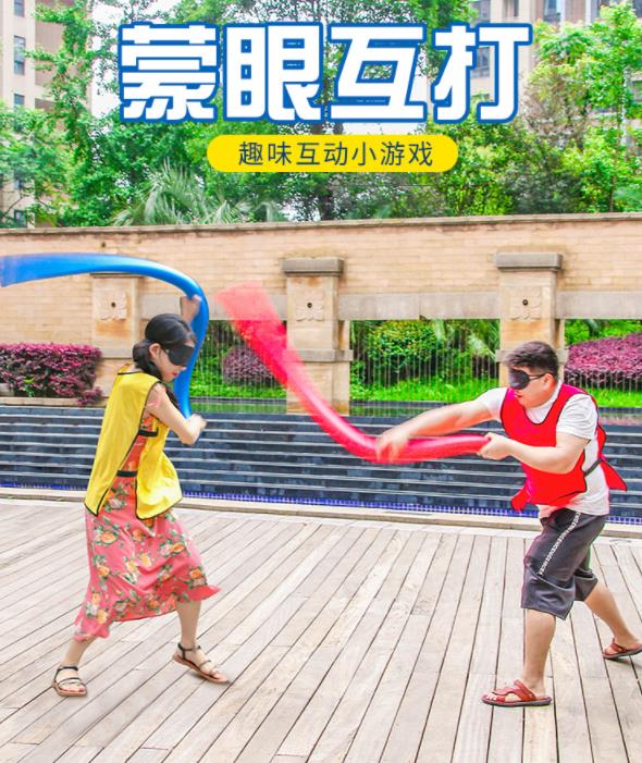 遊戲玩法2:在雙方隊員就位後,戴上(shàng)眼罩,將兩(liǎng)人的距離拉開,中間距離在三米左右。