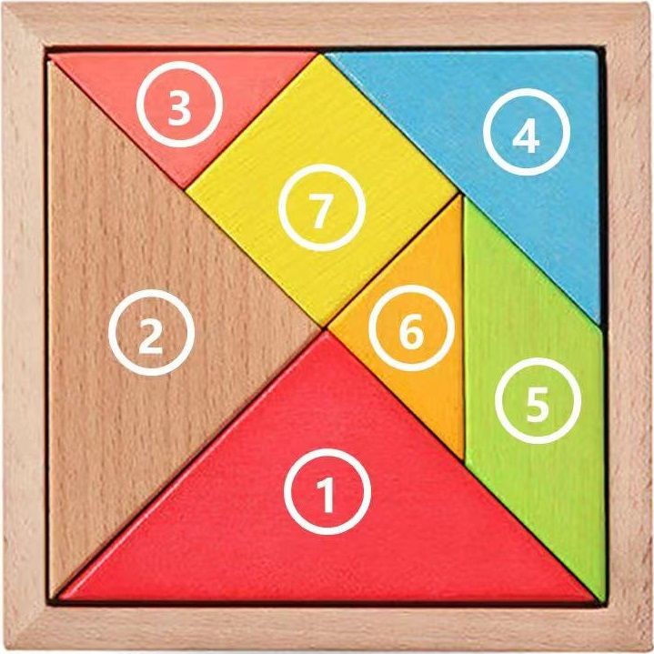 ②五種顏色的七巧板,共7*5=35塊。材料可以選擇硬紙板、塑料板或者有(yǒu)機玻璃板(bǎn)