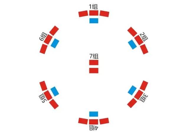 2.把7個組的成(chéng)員分(fèn)別帶到擺好的椅(yǐ)子坐好,並宣布七組的編號。